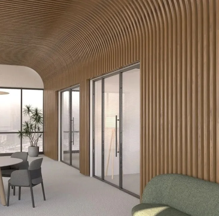 At Acoufelt, we believe acoustic design is integral to exceptional architectural and interior design. Our approach considers the purpose and function of each space, as well as the physical and emotional context envisioned by the designer, enhancing the well-being and productivity of spaces while benefiting the planet.